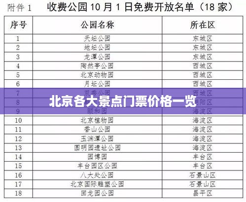 北京,作為中國的首都,是一個歷史悠久、文化豐富的城市,吸引了世界各地的游客,從故宮到天安門,從頤和園到長城,每一個景點都有其獨特的魅力,對于許多游客來說,門票價格可能是決定旅行預(yù)算的重要因素之一,本文將詳細介紹北京各大旅游景點的門票價格,幫助游客更好地規(guī)劃行程和預(yù)算。