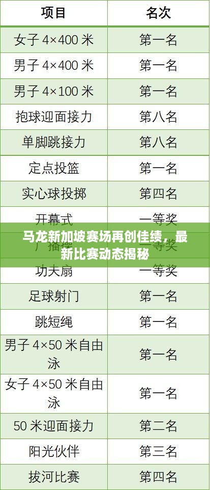 馬龍新加坡賽場(chǎng)再創(chuàng)佳績,最新比賽動(dòng)態(tài)揭秘