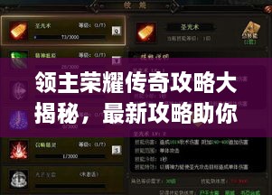 領(lǐng)主榮耀傳奇攻略大揭秘,最新攻略助你成為頂尖領(lǐng)主!