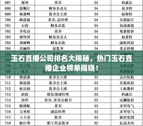 玉石直播公司排名大揭秘,熱門玉石直播企業(yè)榜單揭曉!