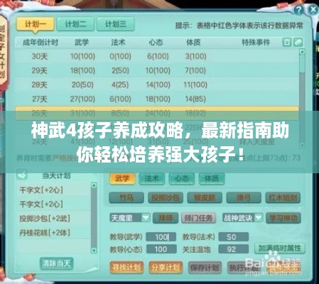 神武4孩子養(yǎng)成攻略,最新指南助你輕松培養(yǎng)強大孩子!